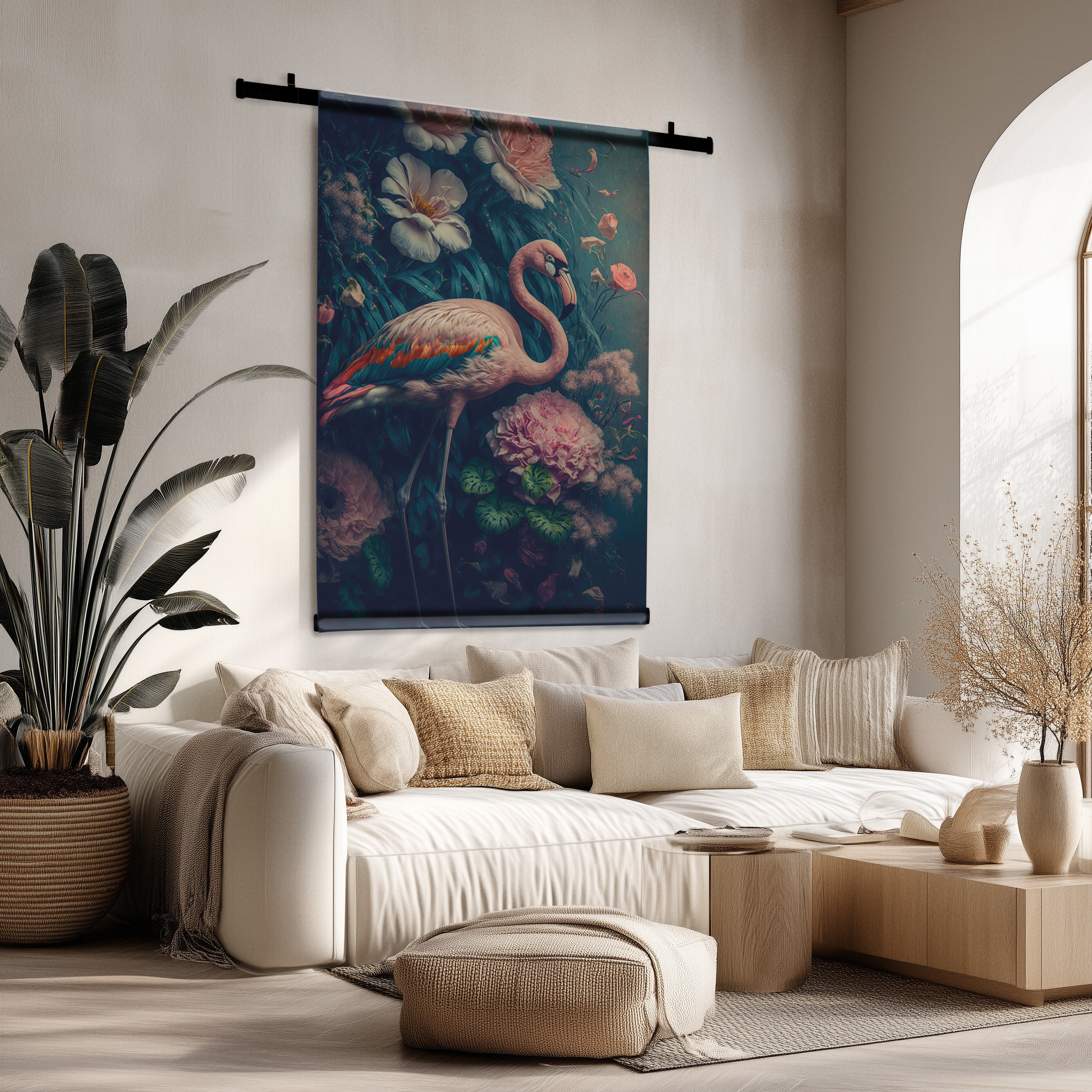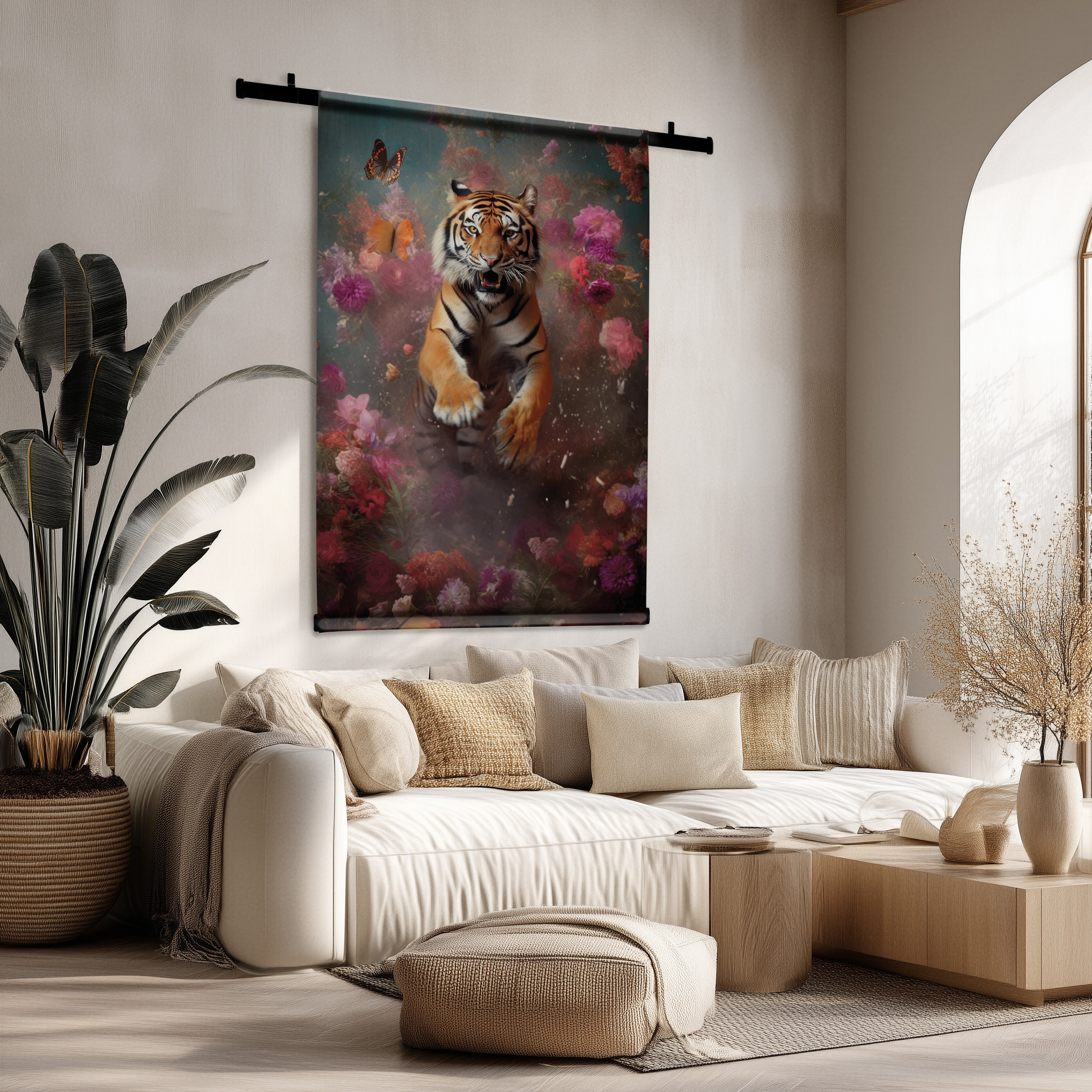 Onze wandkleden worden gedrukt op hoogwaardige stoffen met oog voor duurzaamheid. Ze zijn kleurvast, makkelijk op te hangen. Ideaal als je een statement wilt maken in je interieur zonder gaten te boren of ingewikkelde montagesystemen te gebruiken.