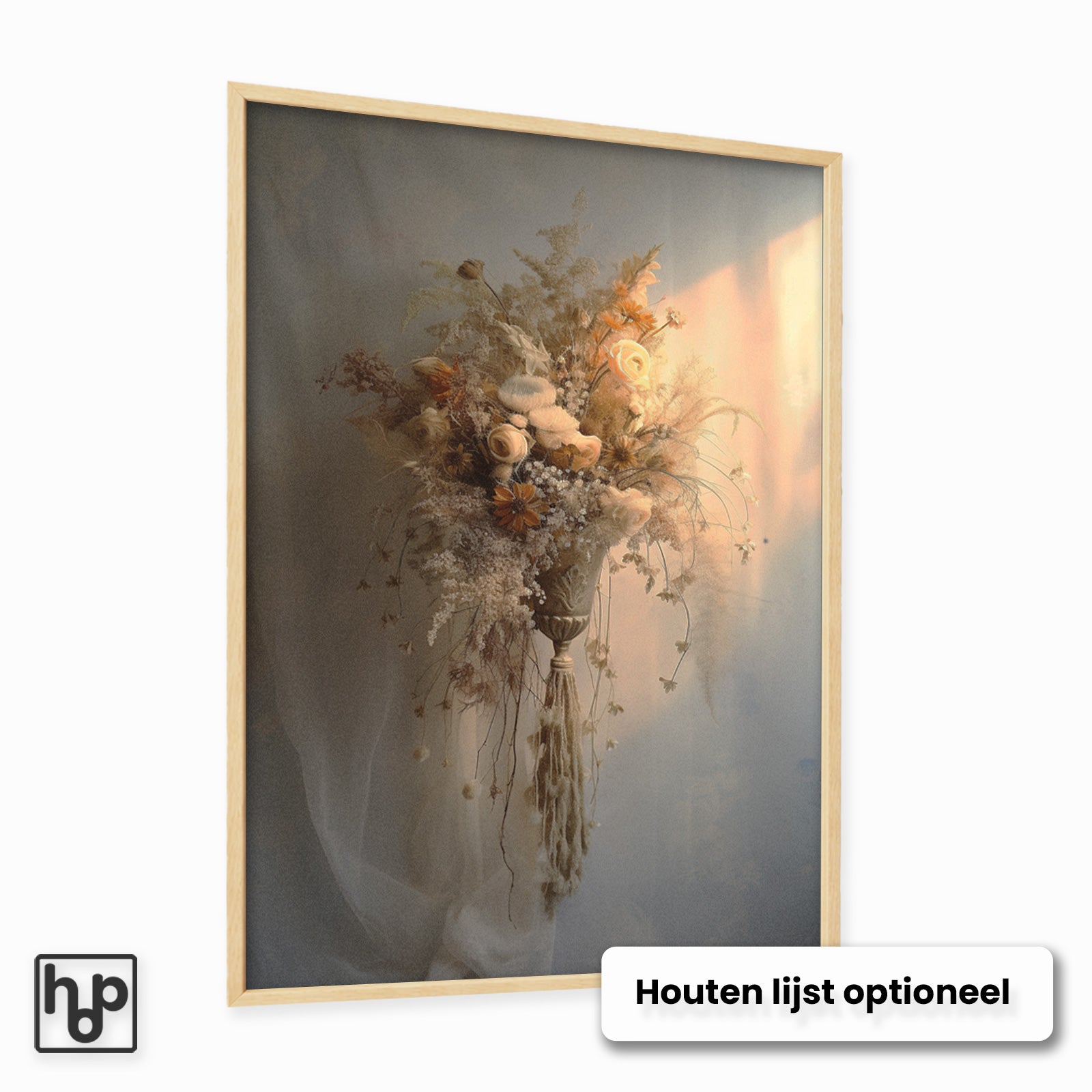 Dit kunstwerk brengt natuurlijke schoonheid en een tijdloze charme in je woonkamer, slaapkamer of werkplek. De zachte, natuurlijke kleurenmix en florale vintage motieven zorgen voor een fraai contrast en een rustige sfeer. Door het staande formaat is deze poster ideaal voor smalle muren en vormt het een stijlvol muuraccent. Deze designposter past perfect binnen landelijke, scandinavische en bohemian interieurstijlen, en is een subtiel maar opvallend statement in elke ruimte.