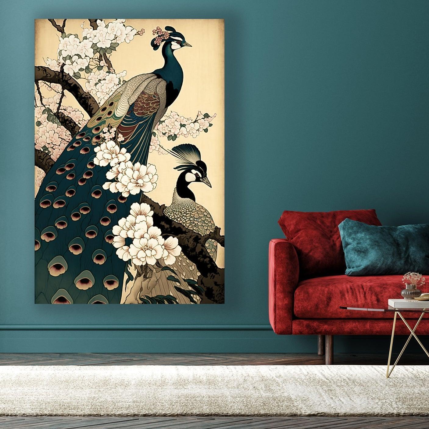 Deze wanddecoratie combineert zachte botanische kleuren met een rank ontwerp van sierlijke pauwen en kersenbloesem, wat zorgt voor een kalm en uitnodigend effect. Dankzij het vintage Japanse thema past dit kunstwerk uitstekend in een zen of Japandi interieur, maar ook in een minimalistische of scandinavische woonstijl komt het bijzonder goed tot zijn recht. De poster voegt rust en verfijning toe aan de woonkamer, slaapkamer of werkplek, waardoor het een stijlvol muuraccent is dat direct de sfeer verbetert.