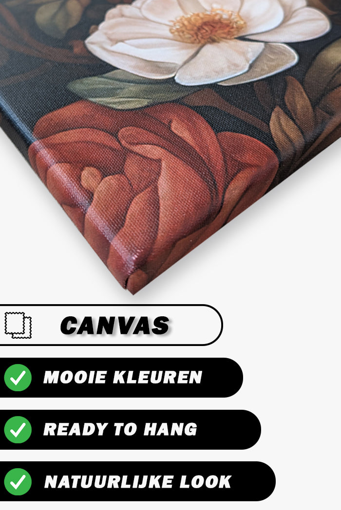 Canvas wanddecoratie voegt textuur en warmte toe aan je interieur. Of je nu kiest voor een canvas zonder baklijst voor een minimalistische look of met baklijst voor een meer klassieke uitstraling, canvas biedt altijd een tijdloze, hoogwaardige afwerking voor jouw muurdecoratie.