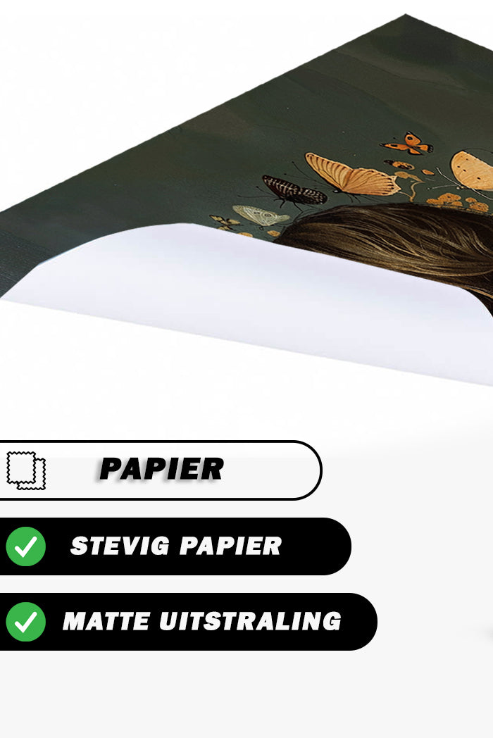 Papier van 250 gram met mat laminaat biedt een hoogwaardige afwerking voor wanddecoratie. Dit materiaal is stevig, duurzaam en zorgt voor een elegante uitstraling, met een matte afwerking die kleuren subtiel en op een verfijnde manier naar voren laat komen. Perfect voor kunstwerken en foto’s.