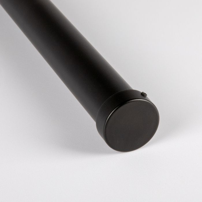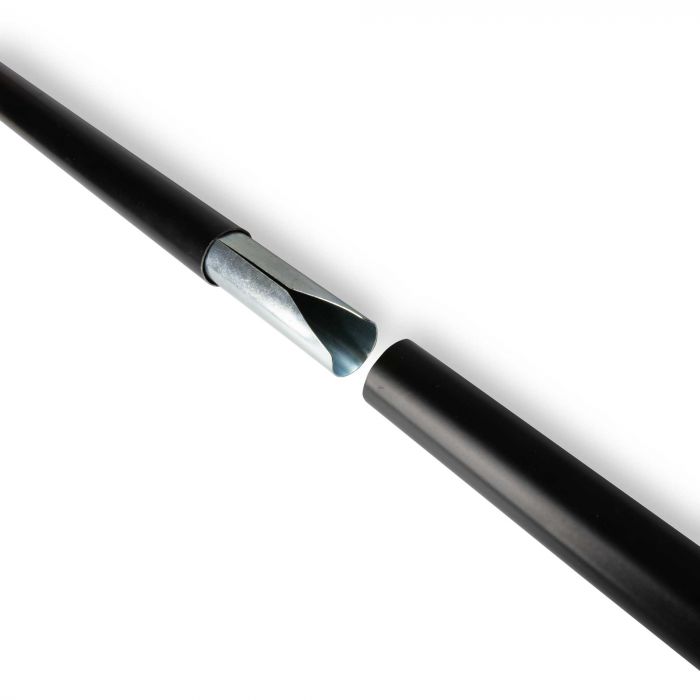 Pak de zwarte stalen doppen. Draai het schroefje met een inbussleutel ver genoeg open zodat de dop de buis past. Bevestig de doppen op de uiteinden van de roede(s) en draai de doppen vast met de inbussleutel.