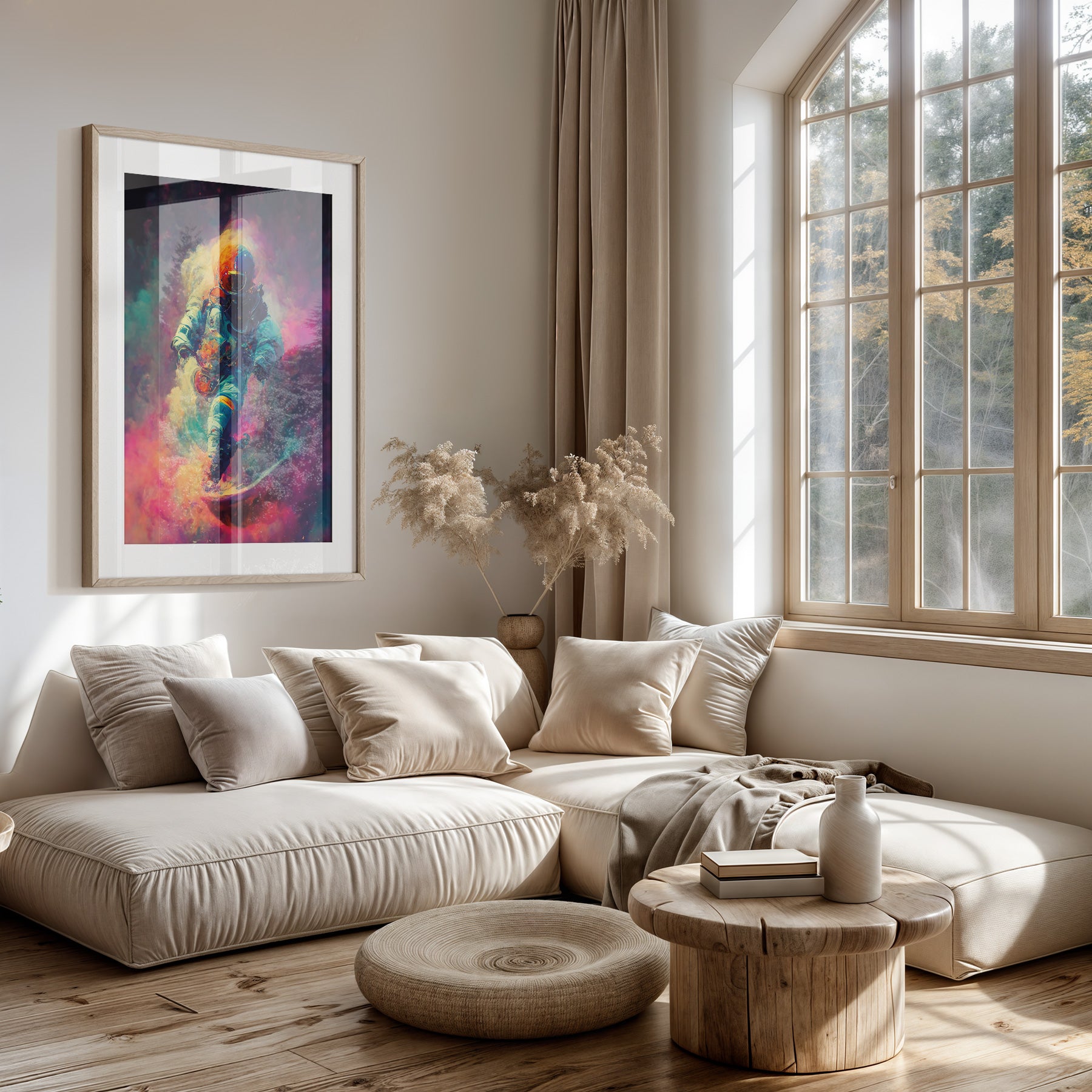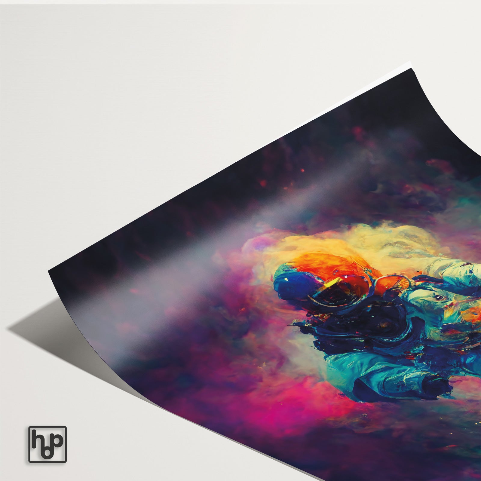 De Colorful Astronaut papieren poster komt het beste tot zijn recht in de woonkamer, slaapkamer of het kantoor. Door de levendige kleuren en het matte oppervlak creëert deze moderne wanddecoratie een uitnodigende en inspirerende sfeer die een ruimte direct karakter geeft. In een hal of werkruimte voegt deze poster bovendien een creatieve touch toe zonder overweldigend te zijn, wat bijdraagt aan een frisse en moderne uitstraling.
