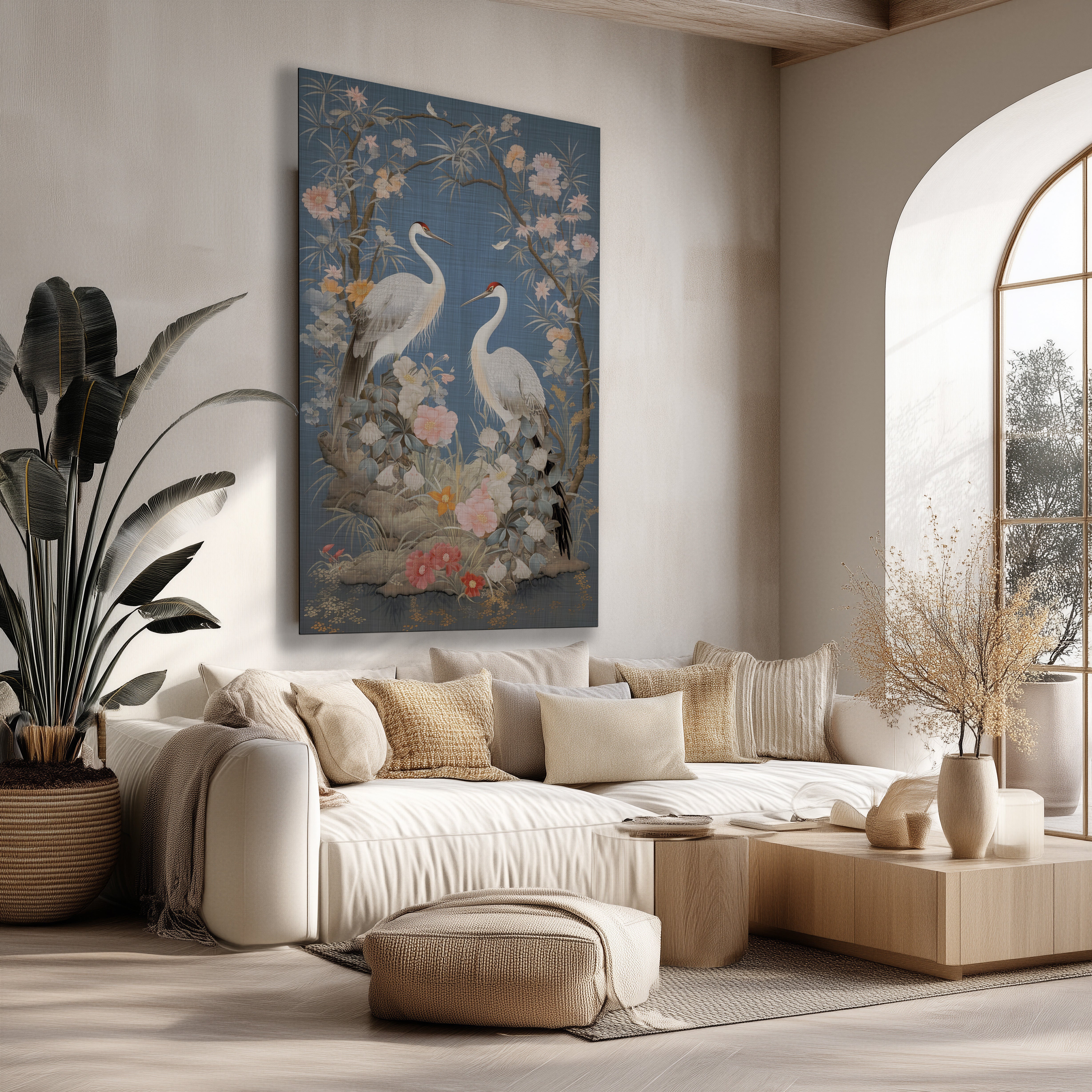 Crane Birds brengt een serene en elegante sfeer in je interieur, waar rust en natuurlijke schoonheid samenkomen. Dit stijlvolle muuraccent versterkt elke ruimte met een verfijnde uitstraling en een tijdloze charme.