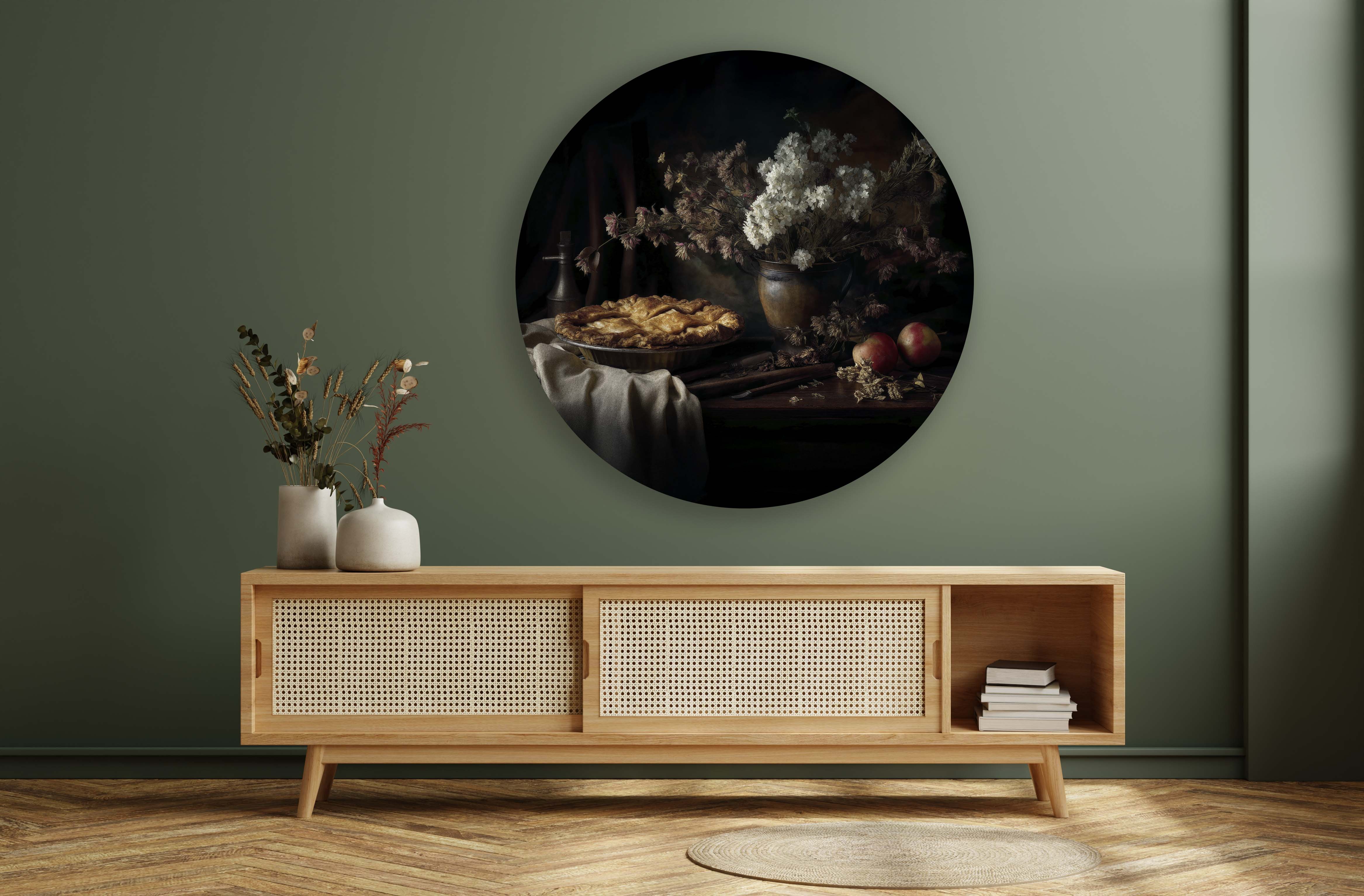 Deze ronde muurcirkel met landelijke illustratie zorgt voor een sfeervolle toevoeging aan je woonkamer, slaapkamer of werkplek.