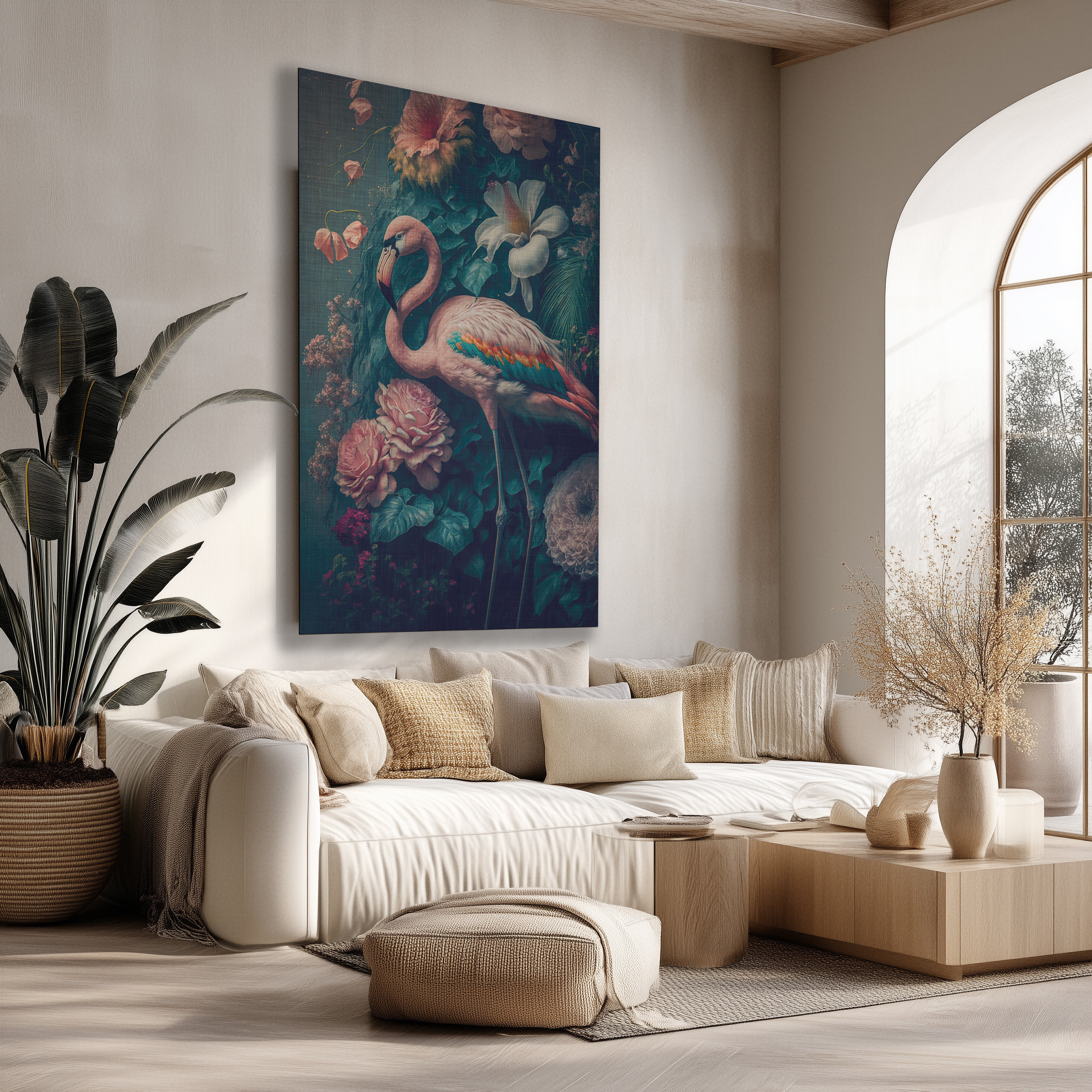 Deze wanddecoratie voegt rust en stijl toe aan je woonkamer, slaapkamer of werkplek. Het subtiele kleurgebruik en het contrast tussen de flamingo en florale elementen zorgen voor een sfeervol en levendig muuraccent. De poster past perfect in een botanisch, vintage of Scandinavisch interieur en brengt een uniek ontwerp dat flair en karakter geeft aan elke omgeving.
