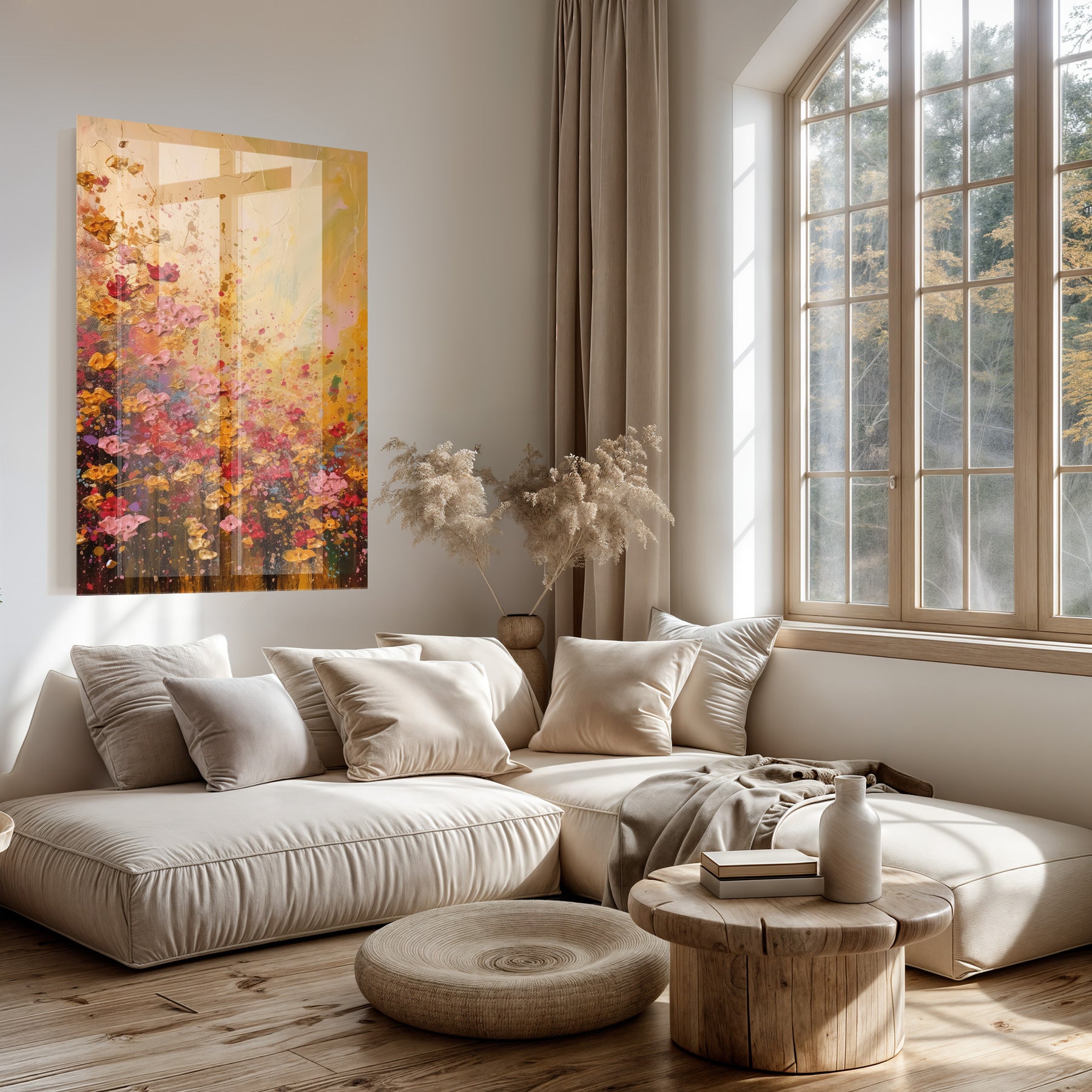 Dit schilderij op plexiglas past uitstekend in ruimtes zoals de woonkamer, slaapkamer, hal of kantoor. In een lichte, moderne interieurstijl wordt de kleurrijke floral print een echte blikvanger. De glans van het plexiglas geeft jouw wanddecoratie een eigentijdse touch die het geheel direct verfrist en opwaardeert.