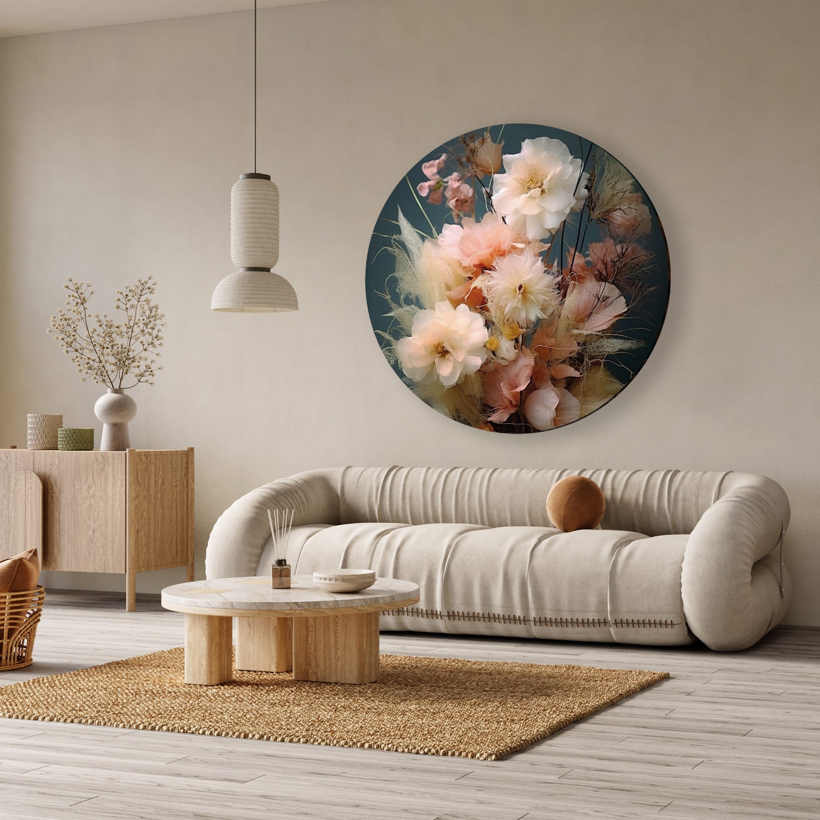 Deze muurcirkel is ideaal voor iedereen die op zoek is naar een verfijnde, duurzame en moderne wanddecoratie. Met Flowers 9 · Aluminium geef je jouw interieur een natuurlijke, zachte uitstraling met een kunstwerk dat kwaliteit en stijl combineert. Ontdek hoe deze dibond kunst aan de muur jouw leefruimte subtiel kan verrijken en bestel vandaag nog jouw nieuwe blikvanger.