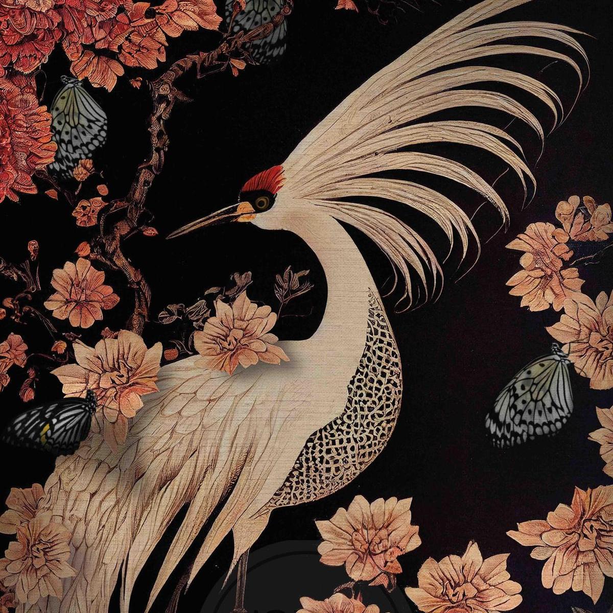 - Aziatische art print met de iconische kraanvogel en bloemmotieven