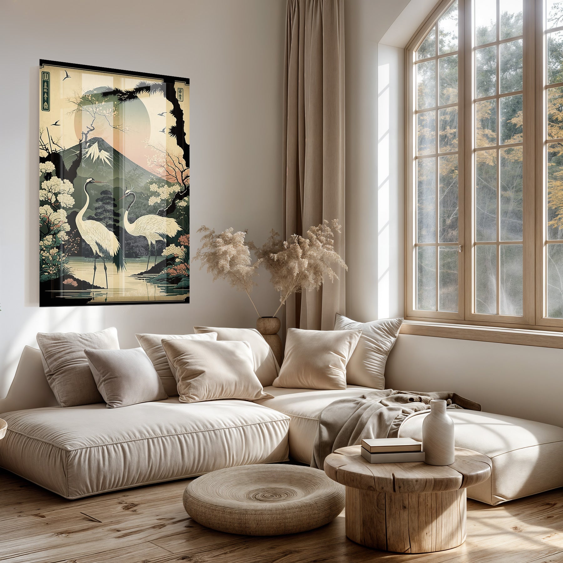 Het plexiglas schilderij Japanese Cranes 4 straalt een serene en tijdloze sfeer uit. Het ontwerp toont elegante Japanse kraanvogels in zachte, natuurlijke tinten die rust en balans brengen in elke ruimte. Deze moderne wanddecoratie past perfect in een strakke, minimalistische woonkamer of een stijlvolle werkplek waar aandacht is voor rust en natuur. De fijne details en harmonieuze compositie zorgen voor een verfijnde uitstraling aan jouw muur.