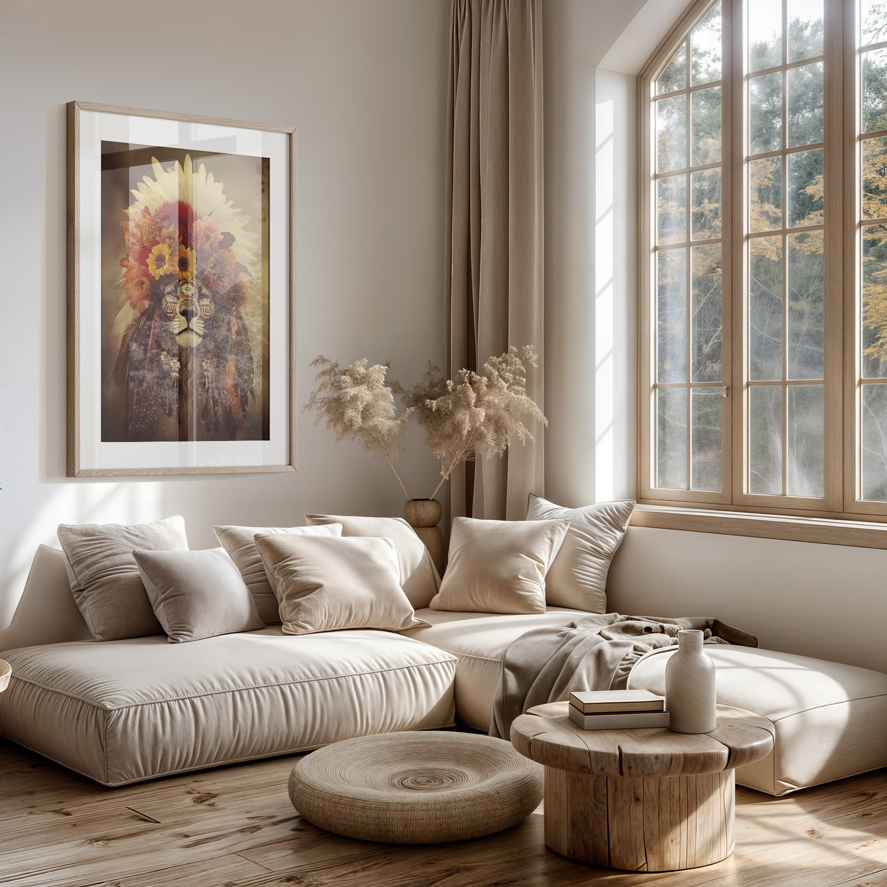 Deze papieren poster komt perfect tot zijn recht in de woonkamer, slaapkamer, kantoor of hal. In een industriële of Scandinavische inrichting versterkt hij de natuurlijke en krachtige sfeer, terwijl hij in minimalistische of bohemian ruimtes net dat extra karakter toevoegt. De rustige matte look maakt het een ideale keuze om een muur subtiel te verfraaien zonder het oog te vermoeien.