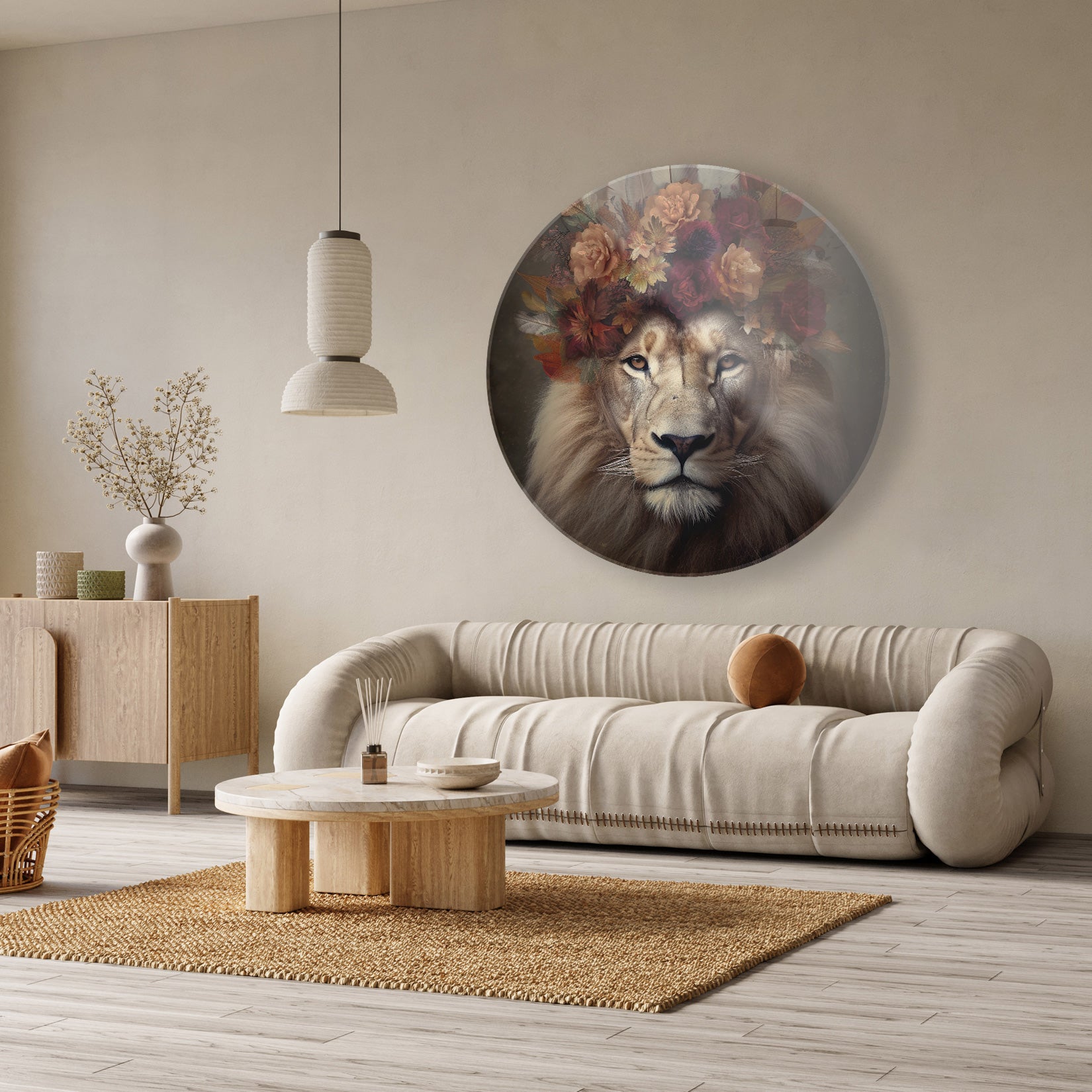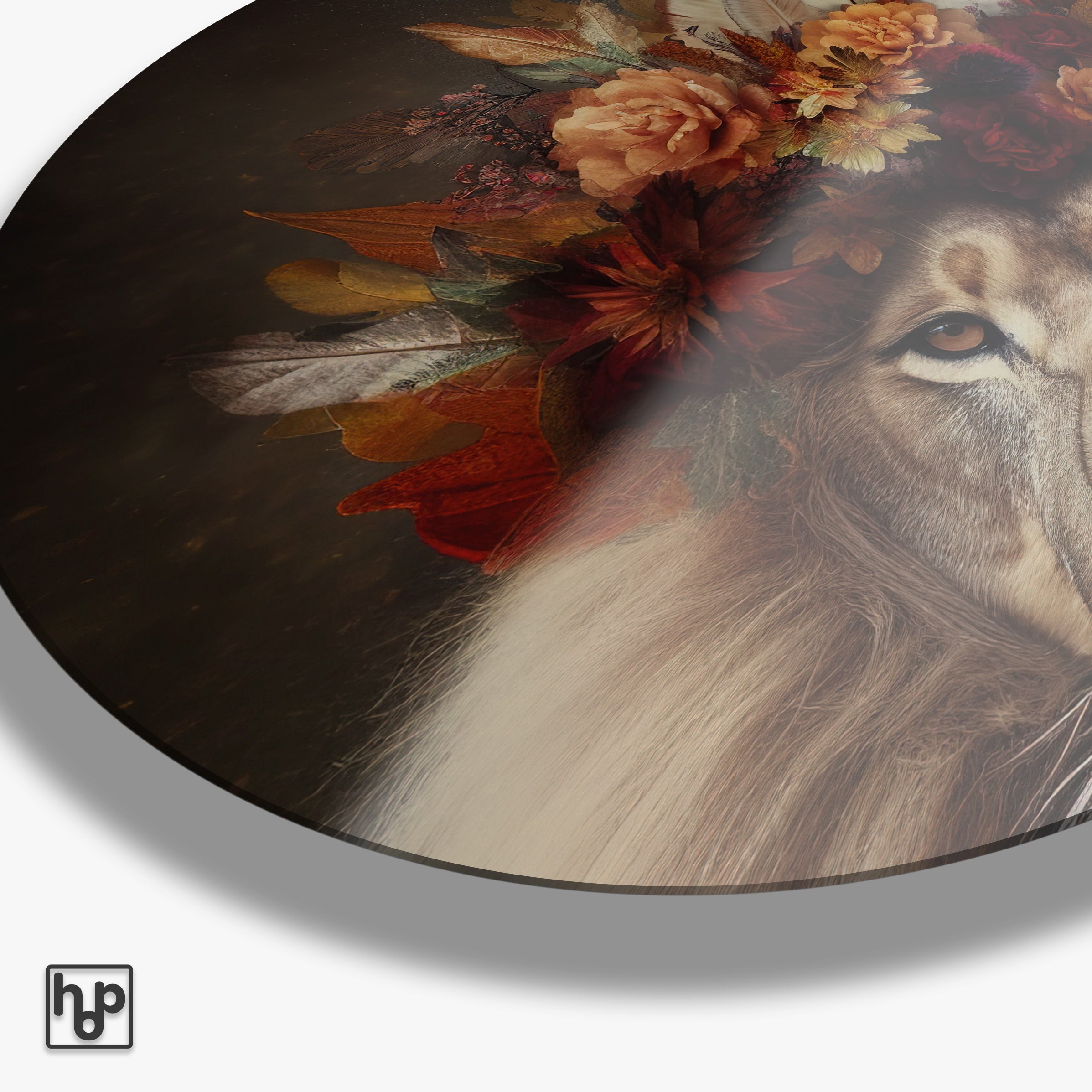 Deze muurcirkel van plexiglas met het ontwerp Lion 6 straalt kracht en natuur uit. Het indrukwekkende portret van een leeuw met een bloemenkroon combineert dierenrijkdom met een subtiele artistieke twist. Dit plexiglas schilderij brengt een bijzondere sfeer in je interieur en past perfect in een woonkamer, slaapkamer of kantoor waar je een moderne en toch warme uitstraling wilt creëren.