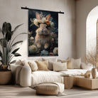 De zachte velours stof met een fluweelzachte uitstraling contrasteert mooi met de robuuste matte structuur van Mezo polyester, waardoor je kiest voor luxe of natuurlijkheid. Met het fijne motief van een lief konijn en delicate bloemen voegt dit kunstwerk een speels maar rustig kleuraccent toe. Dit wandkleed past perfect binnen woonstijlen zoals landelijk, bohemian, scandinavisch en kindvriendelijk interieur. Een sfeervol en origineel stijlvol muuraccent dat elke ruimte net dat bijzondere tintje geeft.