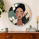 De ronde vorm, gecombineerd met botanische accenten en delicate mensenfiguren, maakt dit kunstwerk een prachtig middelpunt in je woonkamer, slaapkamer of werkplek. Door de harmonieuze kleuren en het unieke design voegt deze poster een sfeervol en verfijnd muuraccent toe dat je interieur complementeert zonder te overheersen.