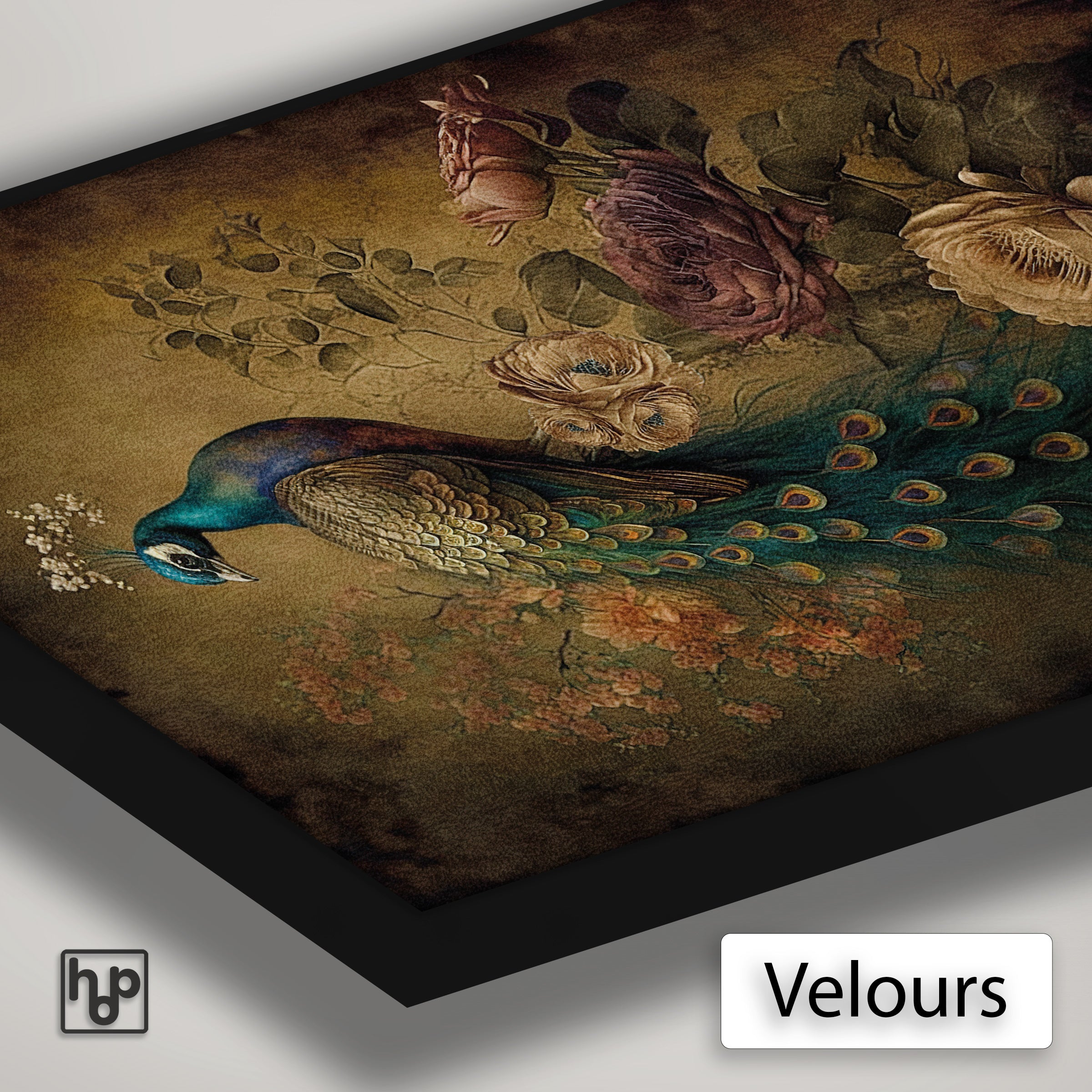 Velours heeft een zachte, fluweelachtige structuur met zijdeglans, waardoor kleuren extra diep en luxe ogen.