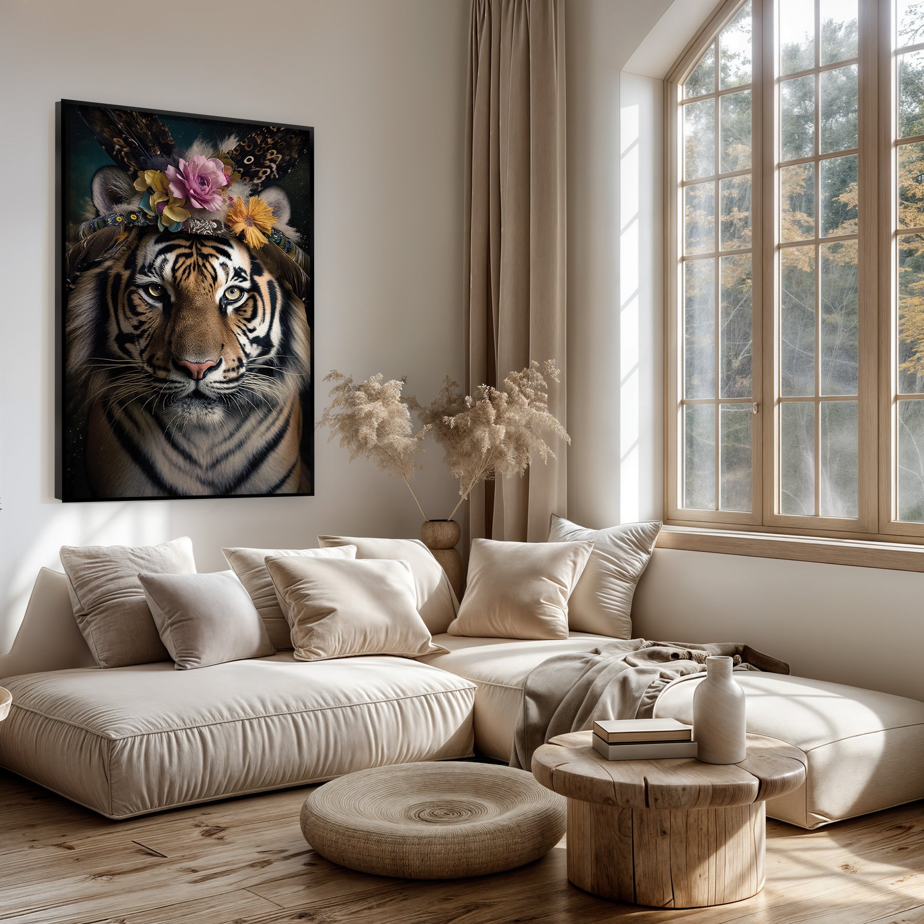 Het artframe Tiger 4 brengt een krachtige en tegelijk stijlvolle sfeer in elk interieur. Met het strakke, scherp geprinte textieldoek krijgt jouw wand een moderne uitstraling die direct de aandacht trekt. Dit wisselbaar kunstframe biedt een perfecte balans tussen opvallend design en subtiele elegantie, waardoor het naadloos past in een woonkamer, slaapkamer, kantoor of hal. Door de flexibele wisselkunst kun je jouw woonruimte eenvoudig aanpassen aan seizoenen of stemming, wat zorgt voor een dynamische en persoonlijke wanddecoratie met wisselbaar doek.