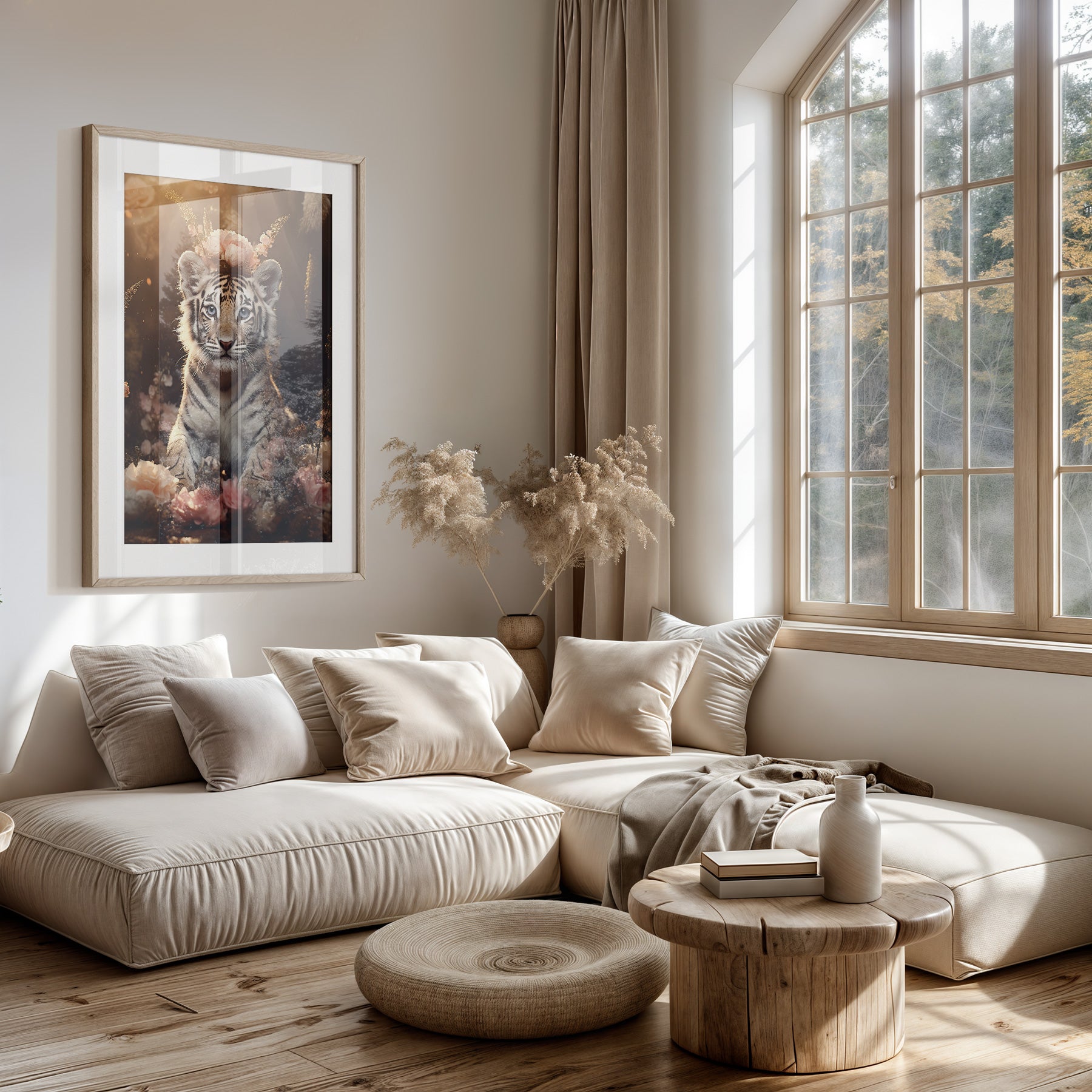 Deze papieren poster met het ontwerp Tiger Cub straalt een speelse en natuurlijke sfeer uit. Het staande formaat in combinatie met subtiele natuurtinten en verfijnde details zorgt voor een frisse en sfeervolle uitstraling in jouw interieur. De matte poster voelt rustig aan en geeft dankzij de niet-reflecterende afwerking een stijlvolle, zachte look die perfect past in smalle ruimtes of boven meubels. Dit kunstwerk brengt warmte en levendigheid in woonkamers, slaapkamers en kinderkamers en sluit naadloos aan bij diverse interieurstijlen zoals Scandinavisch, landelijk en Japandi.