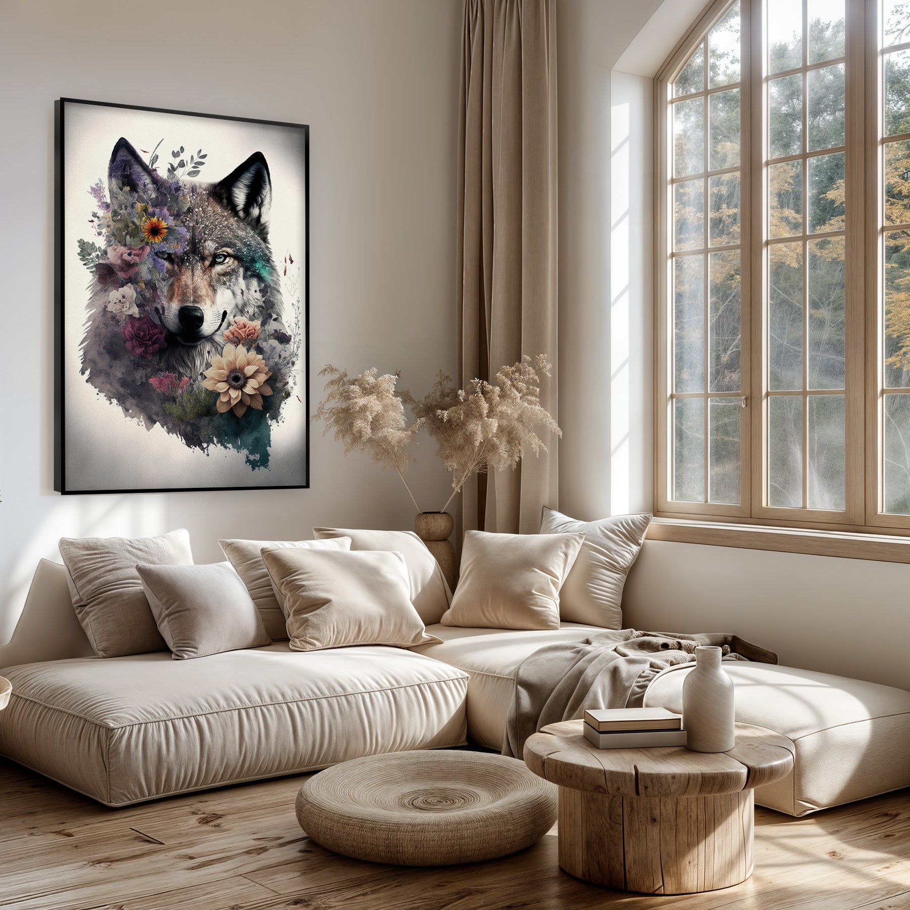 Het artframe Wolf 2 straalt een moderne en natuurlijke sfeer uit, perfect voor wie houdt van een stijlvolle en rustige uitstraling. Met het strak gespannen textieldoek komen de natuurlijke kleuren en het ontwerp prachtig tot hun recht en geven ze elke ruimte direct meer karakter. Dit wisselbaar kunstframe past moeiteloos in een woonkamer, slaapkamer, kantoor of hal, waardoor je jouw wand steeds opnieuw kunt aanpassen aan de sfeer van het moment. Dankzij de flexibiliteit van wisselkunst is het gemakkelijk om te spelen met stijl en seizoenen, zonder grote moeite.