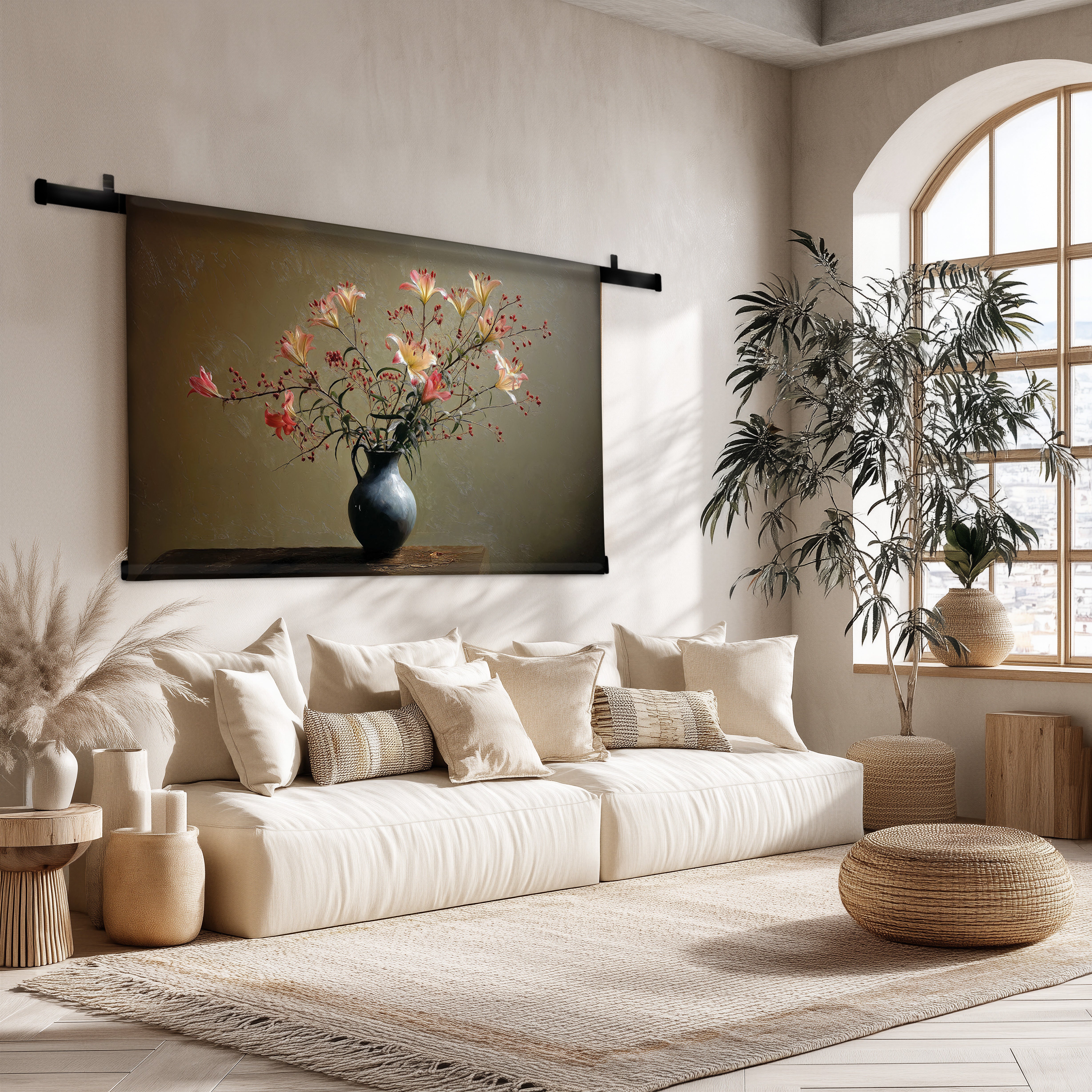 Prachtig wandkleed. Mooie kleuren, mooie stof. Goede ophangsysteem. Heel erg tevreden. Kleed was iets later door defect in printmachine. Dit werd goed vermeld en daarna snel geleverd.